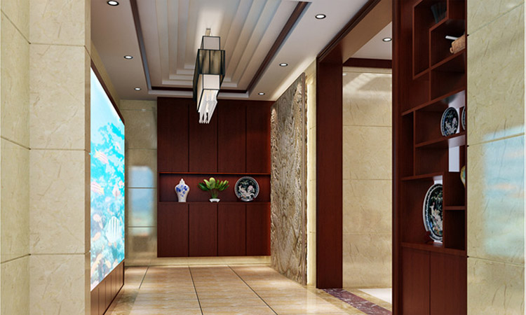 案例說明 本案設(shè)計(jì)手法上,突顯式文化的底蘊(yùn),結(jié)合中國文化的特色以及現(xiàn)代時(shí)尚的觸感,完美的融合到一起。達(dá)到了空間的美和色彩的柔和。因公共空間的大氣及空間的色彩。整個(gè)空間的色彩燈光為明亮柔和。在客廳設(shè)計(jì)上從地面到頂上的大塊大理石給人一種震撼的感覺。兩邊到頂?shù)膶?shí)木雕花更好的融合了新現(xiàn)代和中式的感覺。配上高檔的中式實(shí)木家具,體現(xiàn)了跳空空間的大氣和整個(gè)空間的立體感。